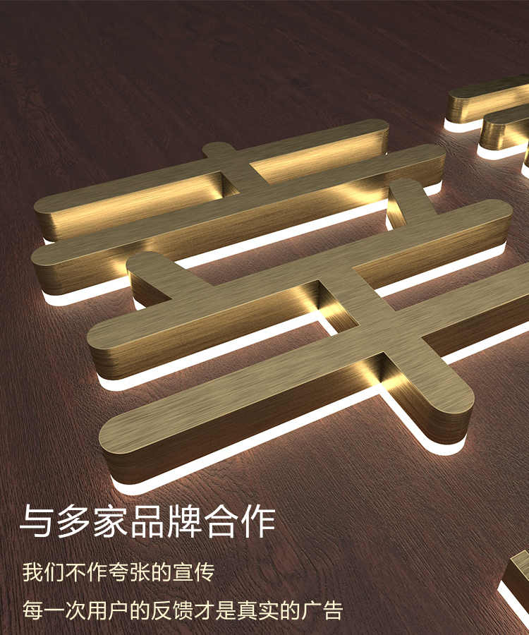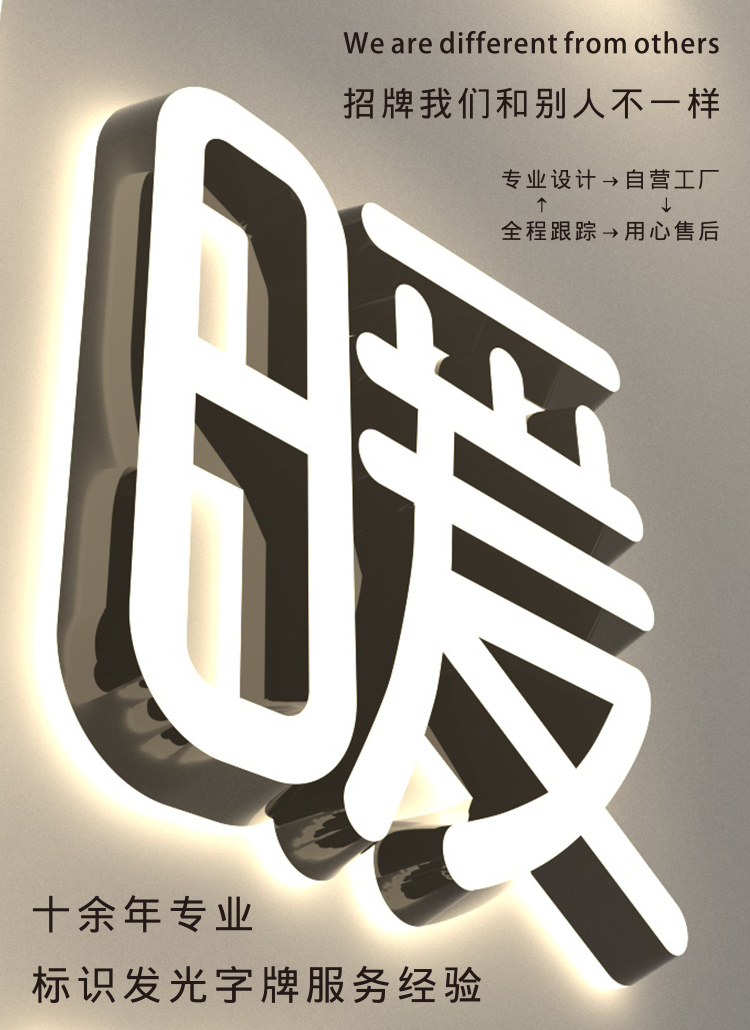 現(xiàn)在戶外廣告立體發(fā)光字中常見地發(fā)光字類型有,亞克力通體發(fā)光字,亞克力吸塑發(fā)光字, 外露燈發(fā)光字,樹脂發(fā)光字和不銹鋼發(fā)光字,我們一直在努力,等待您的光臨。