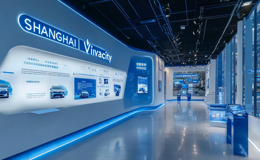 科技感撲面而來。藍白配色簡潔又高級,搭配流動的燈光線條,營造出未來感十足的氛圍,仿佛置身于科幻電影場景中。想要了解更多設計請聯系天峰廣告,給你更多驚喜!