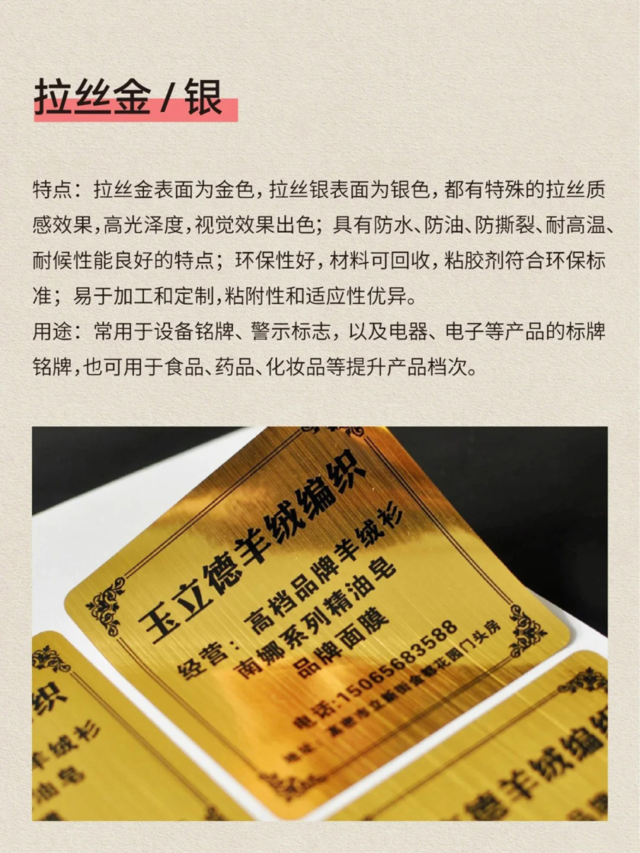 耐候環(huán)境:拉絲銀/金標簽適應(yīng)高溫、油污等極端條件。