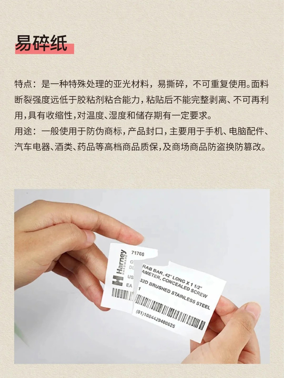 防偽標識:易碎紙標簽用于電子產(chǎn)品,撕毀即失效。
