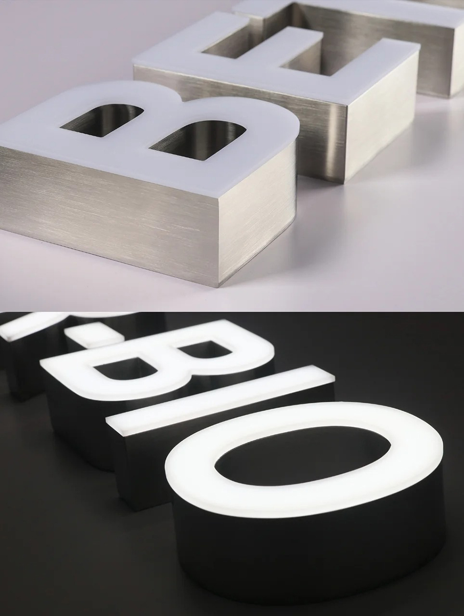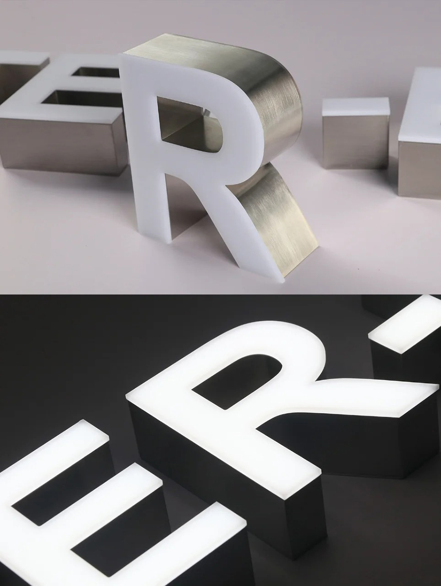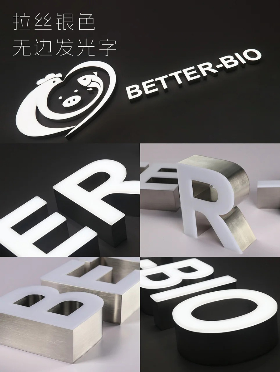 無邊發光字是一種常見的廣告標識發光字,具有獨特的外觀和良好的發光效果, 首先,根據設計要求將亞克力板切割成所需的字形,通過雕刻、打磨等工藝對邊緣進行處理,使其光滑平整。然后,將LED燈條均勻地安裝在底板上,連接好電路,并進行密封處理,以防止灰塵和水汽進入。• 最后,將面板與安裝好光源的底板通過膠水或其他固定方式進行組合,確保兩者緊密結合。廣泛應用于商業場所的門頭招牌、商場專柜、品牌形象店、寫字樓標識、酒店大堂、餐廳酒吧等室內外環境,能夠為企業和品牌提供醒目的標識展示,吸引顧客的注意力。