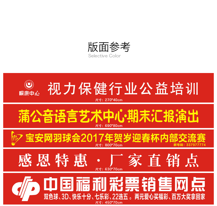 橫幅較其它終端宣傳品一個最大的特點,字體大,字數少,視覺沖擊力大,市場終端宣傳中是一種非常有效的宣傳形式,一般橫幅懸掛在主要繁華街區,終端售點門口、社區;促銷時使用等。由于城市管理的加強,橫幅在發展趨勢上,城市橫幅廣告的發布主要以廣告公司代理發布為主,企業自己任意發布橫幅為趨勢主要將由城市向農村延伸。橫幅實效運作主要有以下特點:??