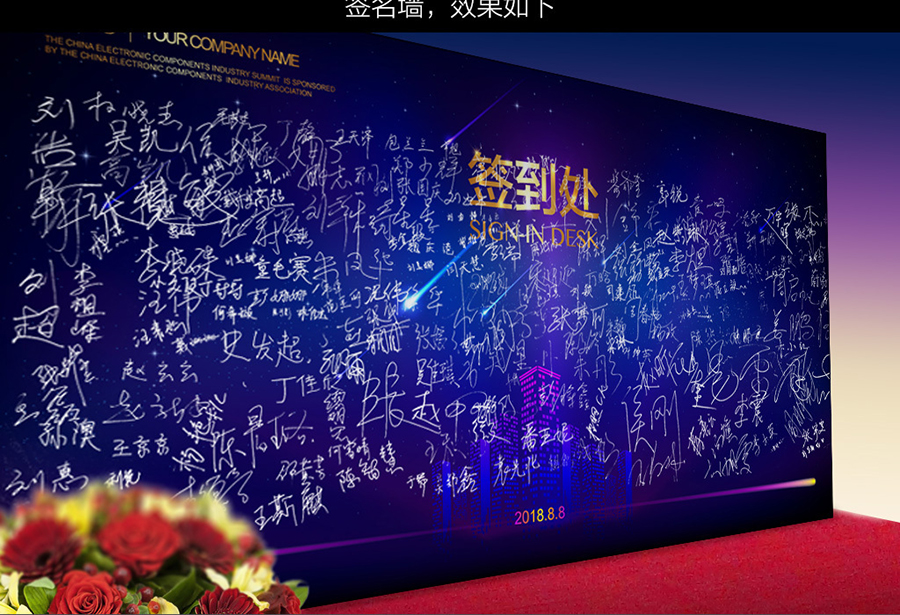 簽到墻,一般制作方法是用行架搭建,正面用550黑色燈布組合安裝制作完成,既具有一種儀式感。現場用戶通過簽到,然后在大屏幕上顯示簽到人員的信息,對于參會人員來說內心里面估計會有中莊重感。 又便于主辦方統計分析參會人員。這種借助微信來實現的簽到墻用戶只需要掃二維碼就可以參與活動,可以根據自己活動需要設置簽到的時候填寫些基本信息,會議活動結束后在蜀樂互動后臺可以導出用戶填寫的基本信息,可以分析統計參與人員信息。